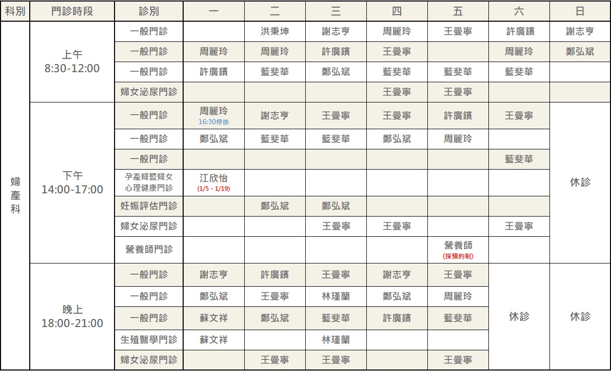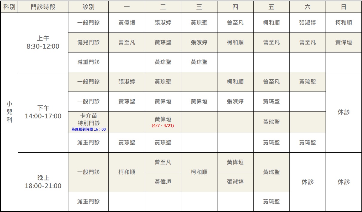 *小兒科週二、週五下午,除卡介苗門診日期外,皆為一般門診。
