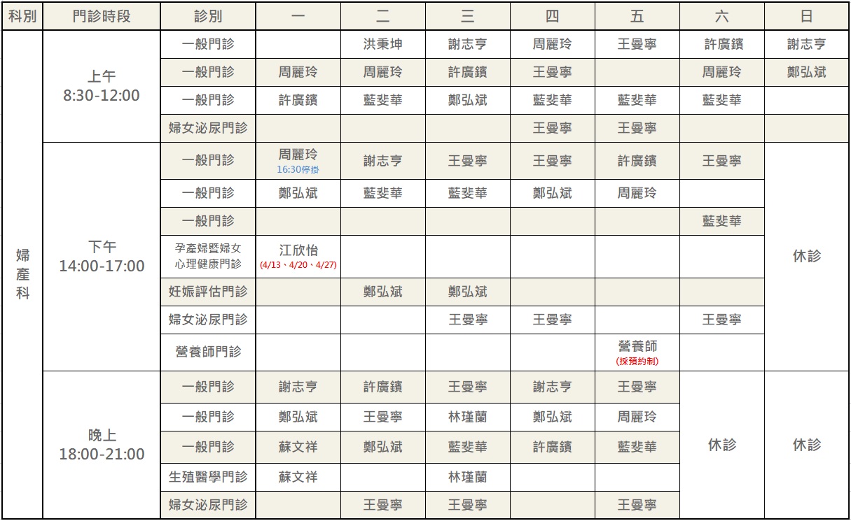2026年4月份婦產科