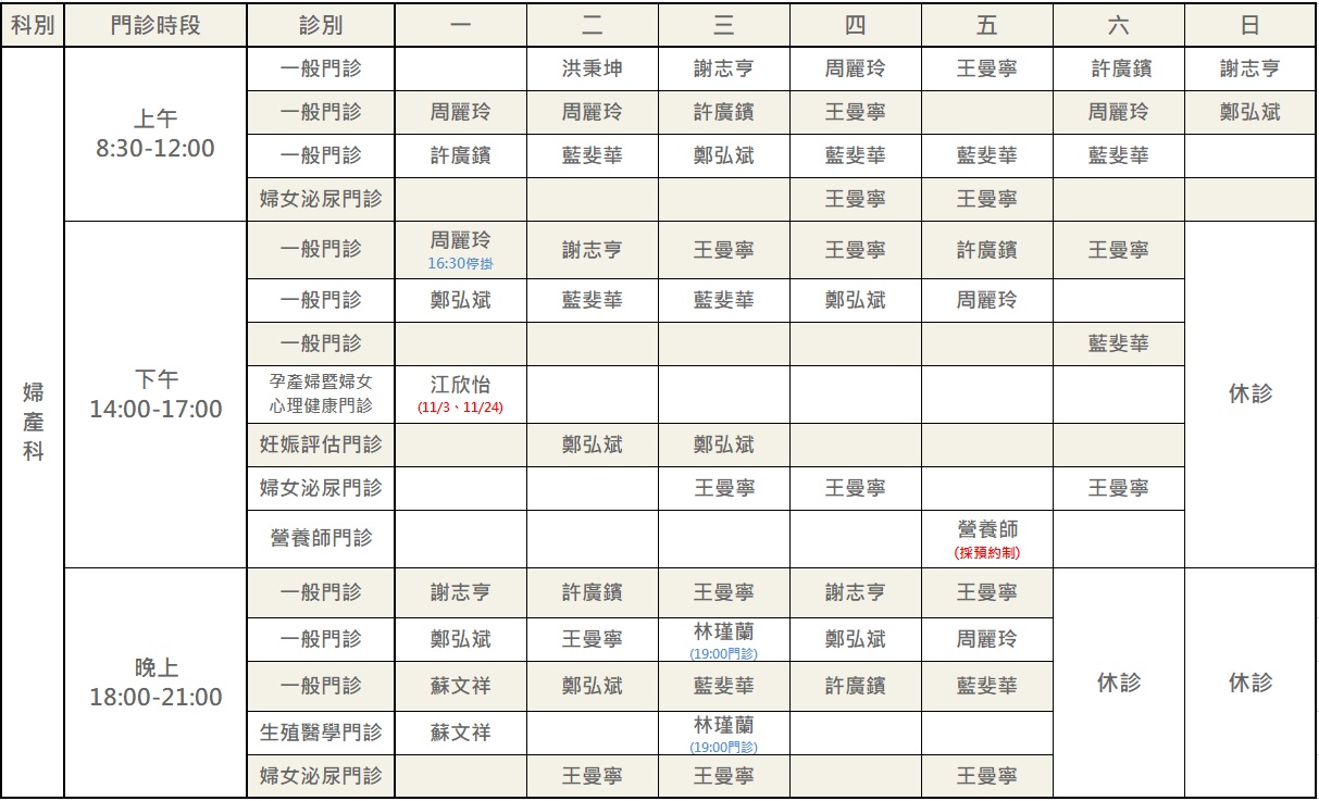 *小兒科週二、週五下午,除卡介苗門診日期外,皆為一般門診。